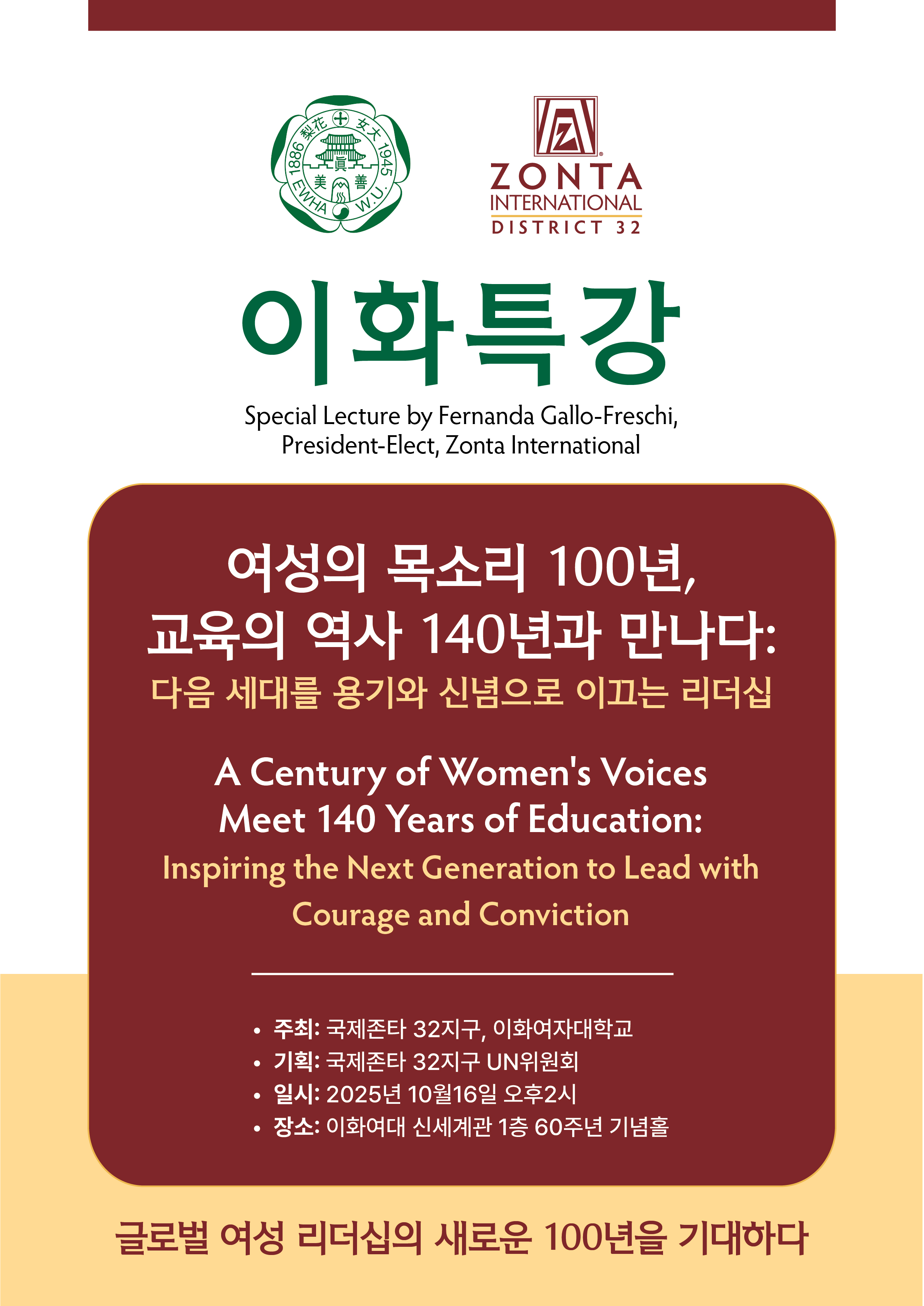 * 특강 주제: A Century of Women's Voices Meet 140 Years of Education: Inspiring the Next Generation to Lead with Courage and Conviction