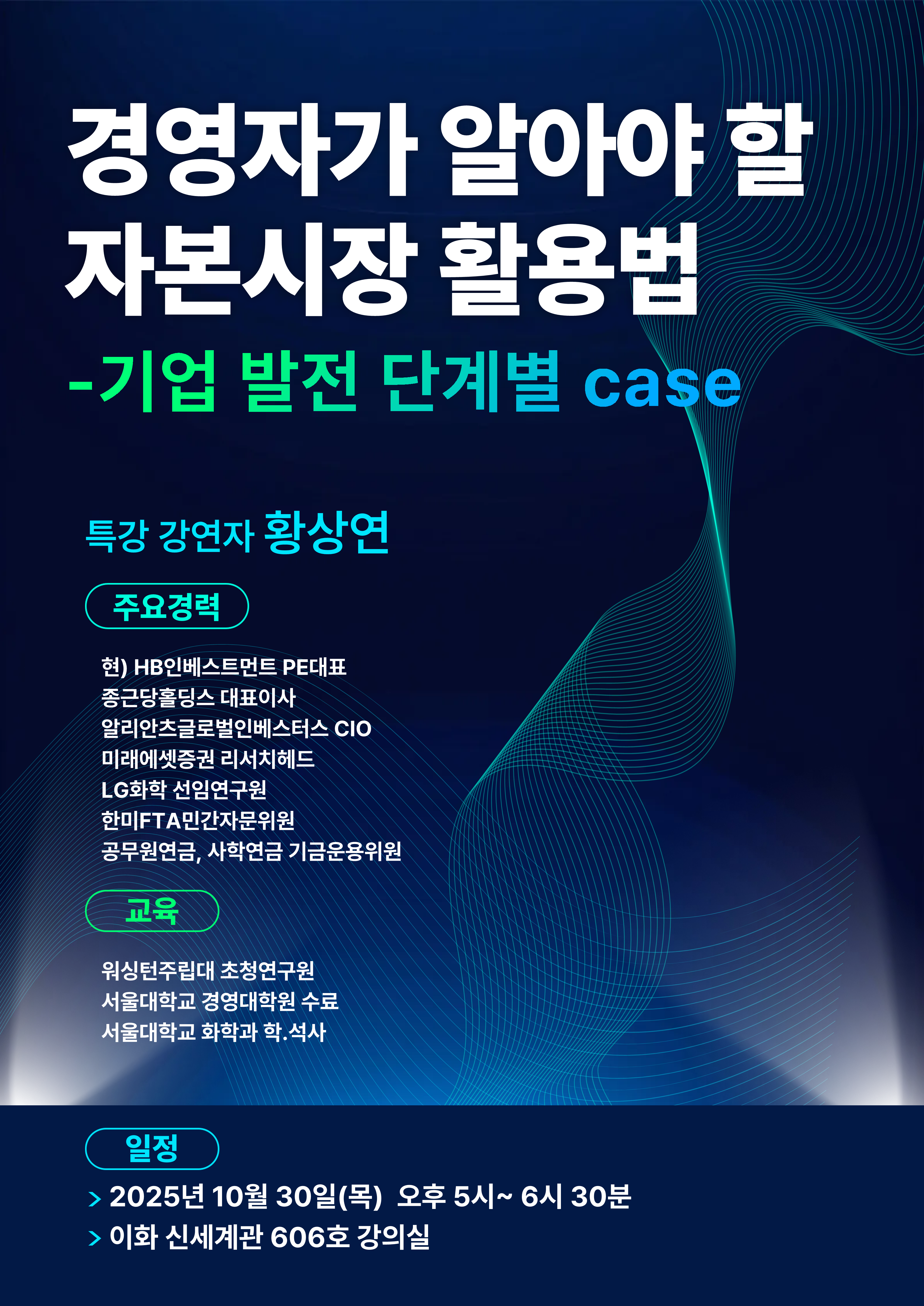 이화여자대학교 경영전문대학원에서 2025. 10. 30.(목), 17:00~18:30 아래의 주제로 특강을 진행합니다.